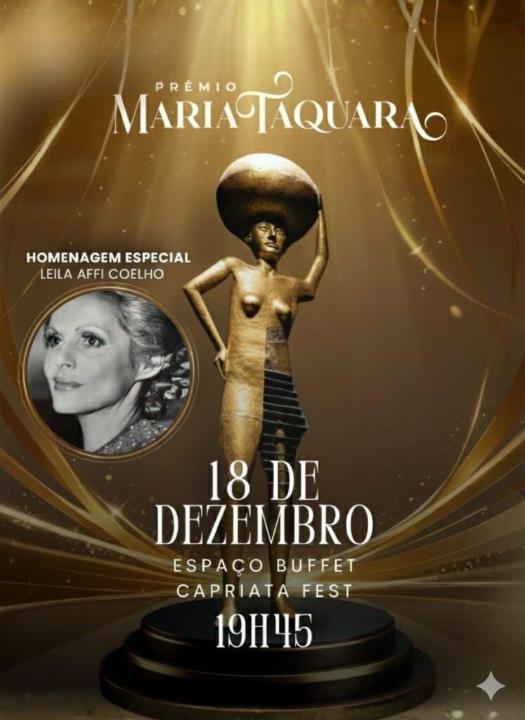 A 6ª edição do Prêmio Maria Taquara – Gente de Expressão 2025 será realizada no dia 18 de dezembro, às 19h45, no Espaço Buffet Capriata Fest, em Cuiabá. Este ano, o evento traz o tema “Brilhantes Jornadas Femininas”, destacando trajetórias de mulheres que transformam seus ambientes com sensibilidade, força e protagonismo.